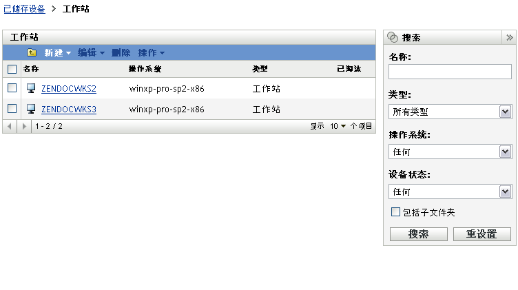 部署该模块之后,设备就会添加到 ZENworks 数据库中。“ZENworks 控制中心”会在“设备”页的选项卡上显示仅储存的设备。