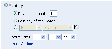 选择并指定 1 到 31 之间的数字、选择,或选择可配置字段,并在其中选择重复日程安排的月份日期组合。