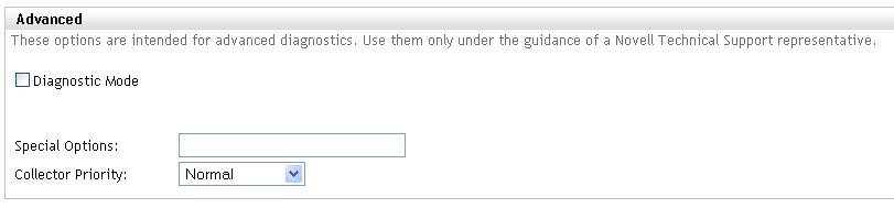 警告:这些选项用于高级诊断。只能在 Novell 技术支持代表的指导下使用。
