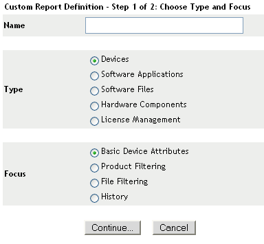 “ZENworks 控制中心”允许您创建并运行可用于分析“管理区域”中库存的自定义报告。以下各节提供了详细信息: