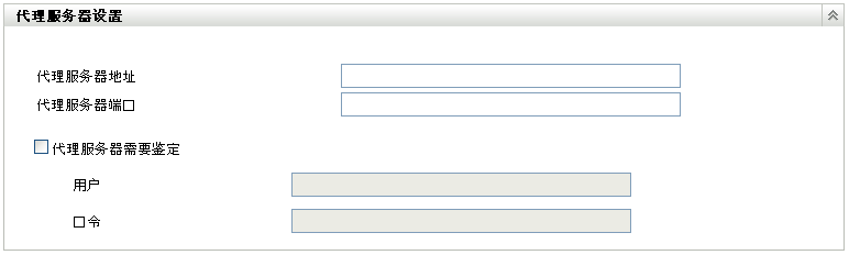 代理服务器需要鉴定: 当选择此复选框时,和字段变得可以编辑。如果需要鉴定,请选中此复选框并指定访问代理服务器的用户名和口令。