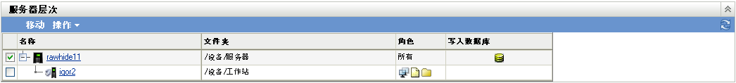 在“服务器层次”面板中,选中所需“主服务器”旁边的复选框。