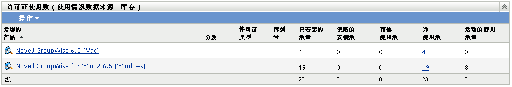 此面板显示与此许可产品关联的发现产品的安装数据。