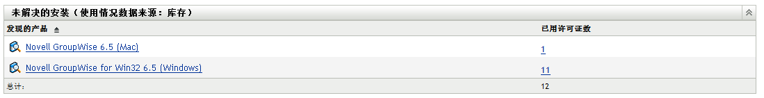 涵盖的安装总数(针对所有权利)应等于“许可证使用数(使用情况数据来源:库存)”面板中的净使用总数。如果不相等,则表示一些发现产品的安装未涵盖在任何权利范围内。这些安装会列在“未解决的安装”面板中。