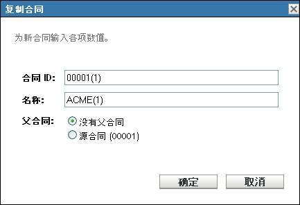 在“合同”面板中,选择要复制的合同旁的复选框,然后单击即会显示“复制合同”对话框。