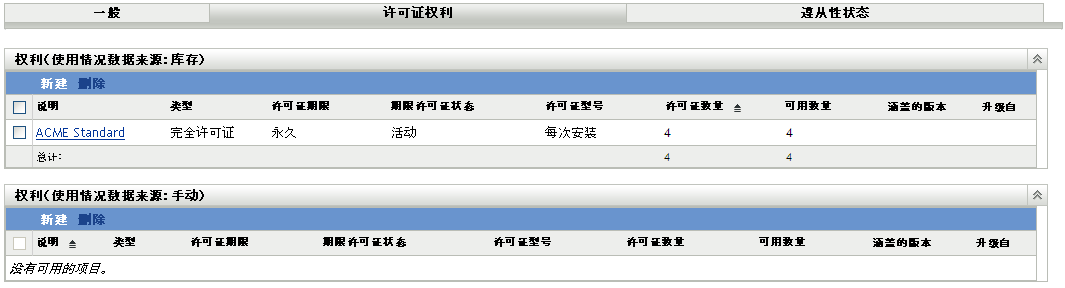 发现的产品只能添加到库存权利中。手动权利不使用发现的产品。