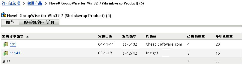 您可以查看购买记录的列表,编目产品就是从购买记录中提取购买的许可证数。