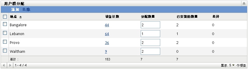 设备计数: 指派给用户群的设备数。单击该数字可显示设备列表。