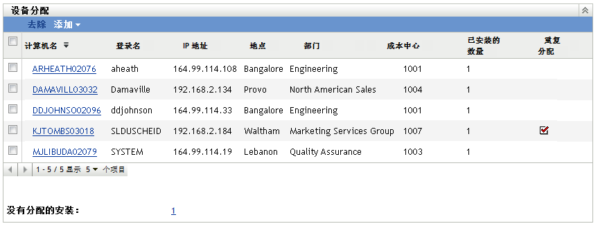 没有分配的安装: 显示通过用户群分配或设备分配未分配到许可证的安装数。单击该数字可显示安装列表。