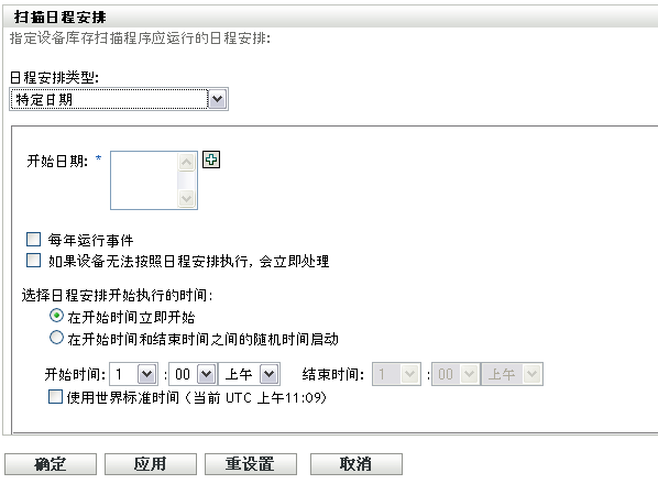 8. (可选)如果要将扫描操作限制在特定日期范围内,则选择将日程安排的执行限制在以下日期范围内,然后指定结束日期和结束时间。