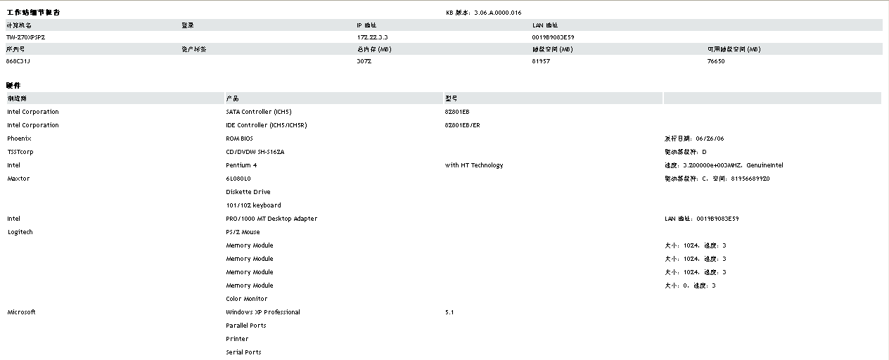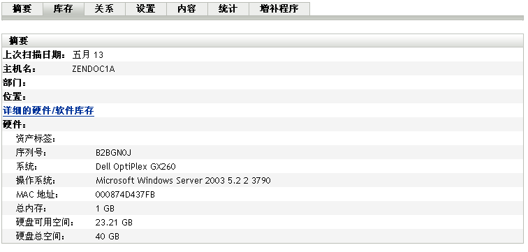 设备的库存包括在库存扫描期间收集到的硬件、软件以及用户群数据方面的信息。可以通过“ZENworks 控制中心”或者使用“ZENworks Icon”菜单来查看此报告。