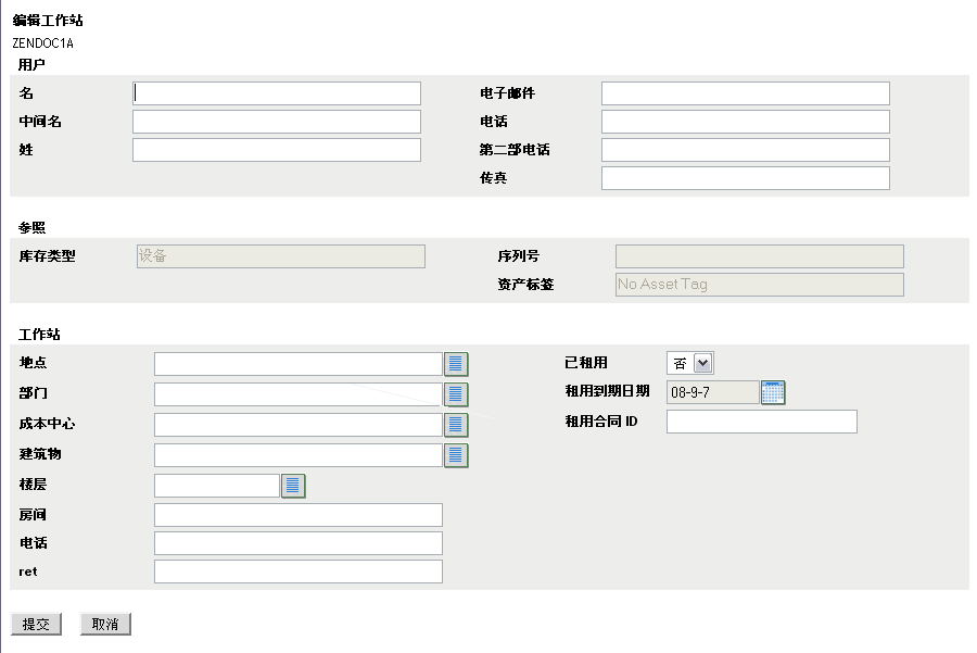 工作站: 工作站的基本信息,包括位置、部门等。单击右侧图标可以创建响应列表。单击计算机租用到期日期字段旁的日历图标选择一个日期。