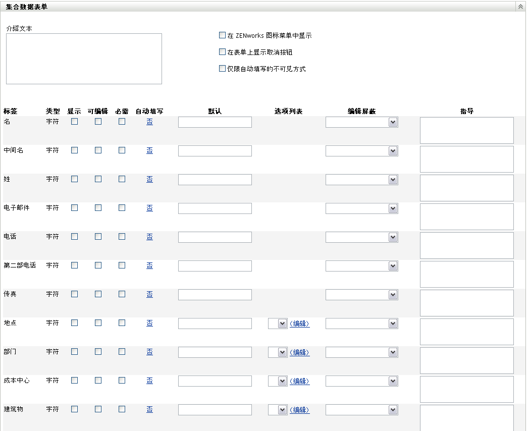 配置“集合数据表单”时,要选择从工作站用户收集的信息的类型。默认不会配置“集合数据表单”。必须先对它进行配置,然后才能部署。
