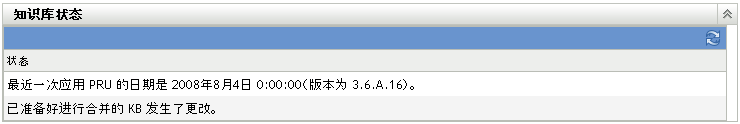 “知识库状态”面板()会显示最新的产品识别更新 (PRU) 日期以及可以与知识库合并的新定义的本地软件产品(如果有)。