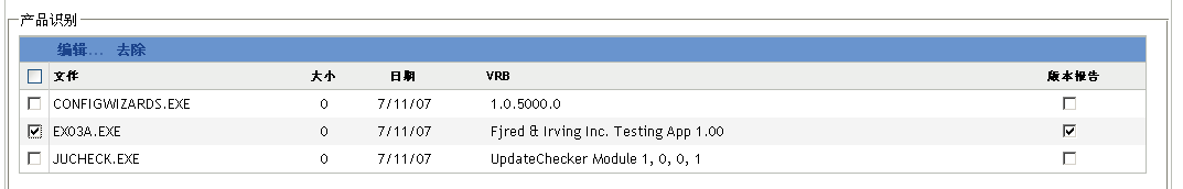 文件版本: 文件的版本。要使用此数据作为识别准则的一部分,请选择用于识别。要使用文件版本而不是产品版本进行识别,请选择报告此处找到的版本