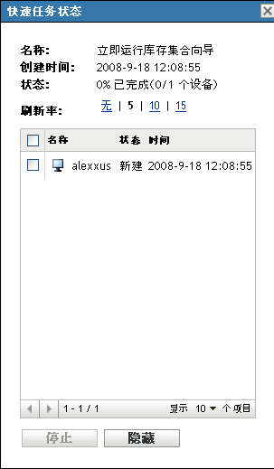 “快速任务状态”对话框会显示部署的进度。完成后,会在设备屏幕上显示“集合数据表单”。您可以通过选择工作站并单击停止来停止部署。