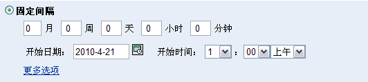 此选项可让您安排在固定的持续时间内定期运行的重复性部署。您可以选择间隔的月数、星期数、天数、小时数和分钟数,以及部署日程安排的开始日期,如下图所示:
