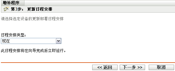 在此页中,您可以将部署安排在完成“部署更新向导”中的剩余步骤后直接执行。