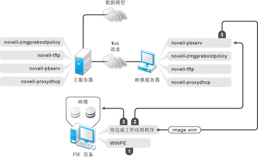 ZENworks Imaging Engine (img) 请求指派的预引导服务工作细节并执行该工作。
