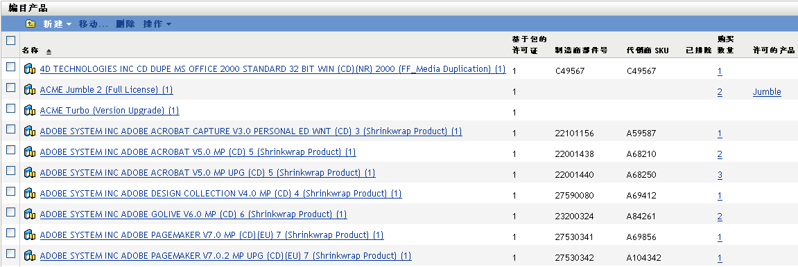 一个编目产品代表一个软件产品。购买记录会将您已购买的产品许可证数填入到编目产品中。