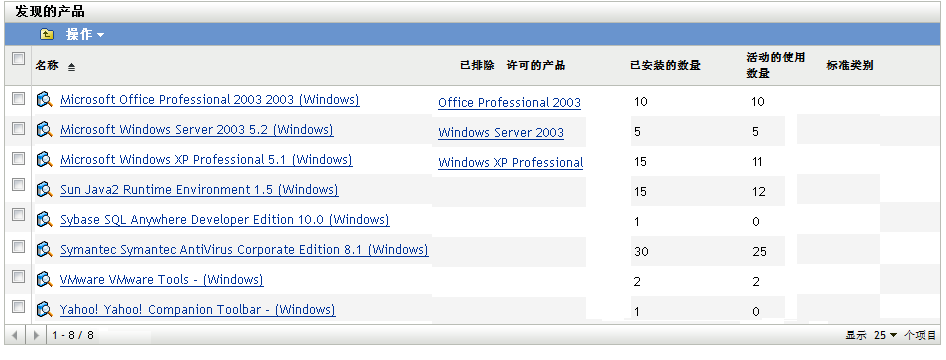 在“许可证管理”面板中,单击显示“发现的产品”列表。