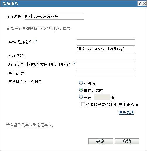 “操作 - 起动 Java 应用程序”对话框可让您配置要在受管设备上执行的 Java* 程序。