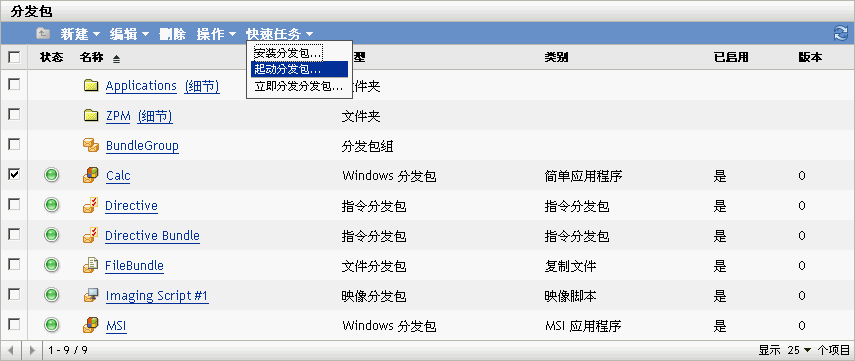 选项可让您立即在一个或多个设备上起动分发包。如果尚未安装分发包,则会安装后再起动。