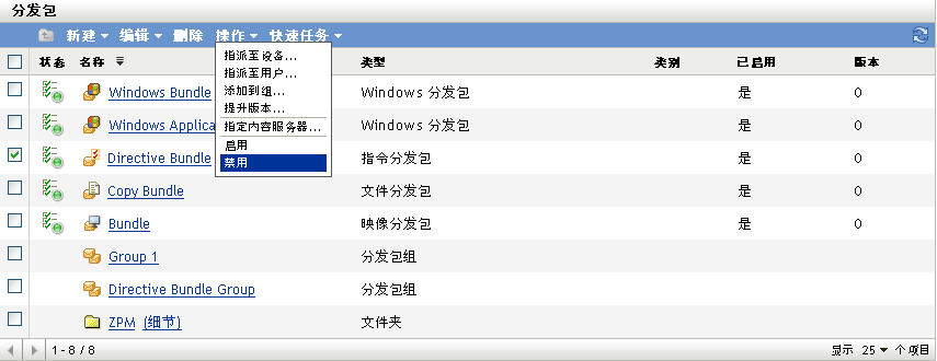 禁用的分发包不会被部署到新的受管设备或内容服务器。它会保留在已部署的设备和内容服务器上。
