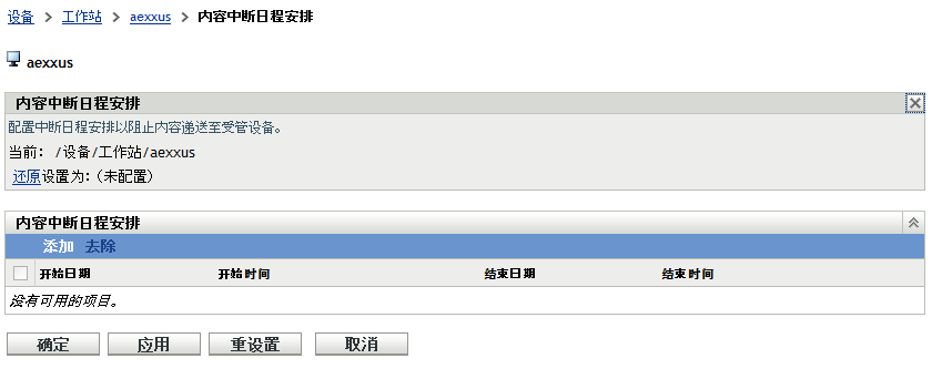 如果要为设备或设备文件夹创建内容中断日程安排,请单击激活“内容中断日程安排”面板。