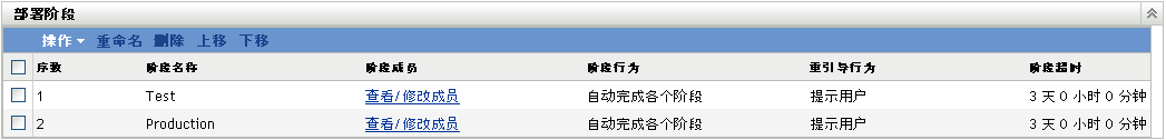 如果需要重新排列部署阶段的顺序,请选择一个阶段,然后单击或。