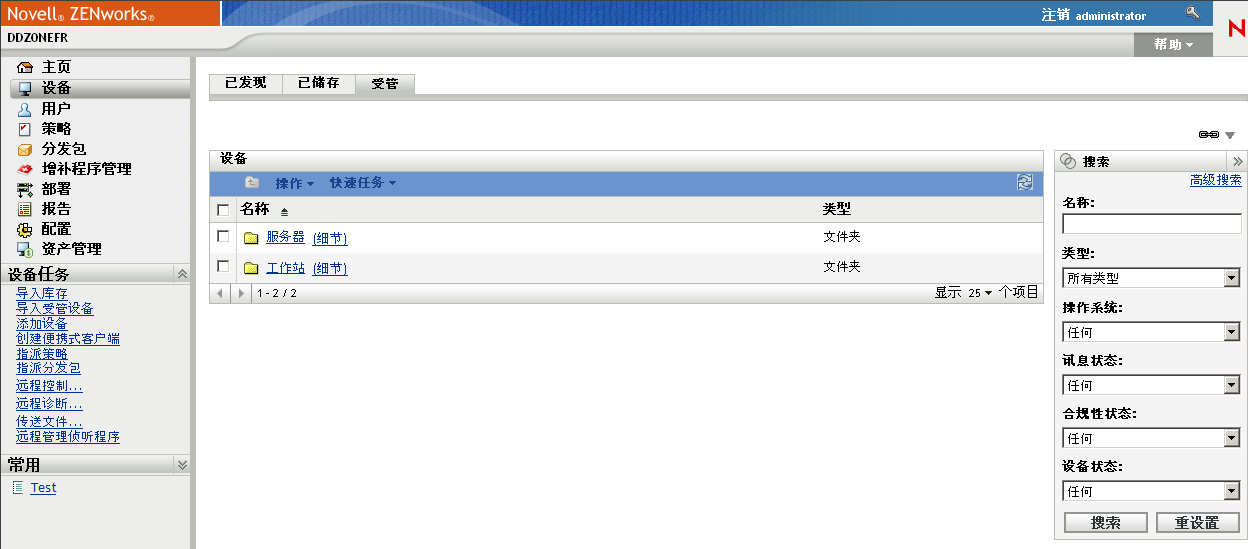 在“ZENworks 控制中心”内,单击设备选项卡。