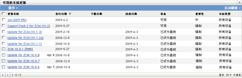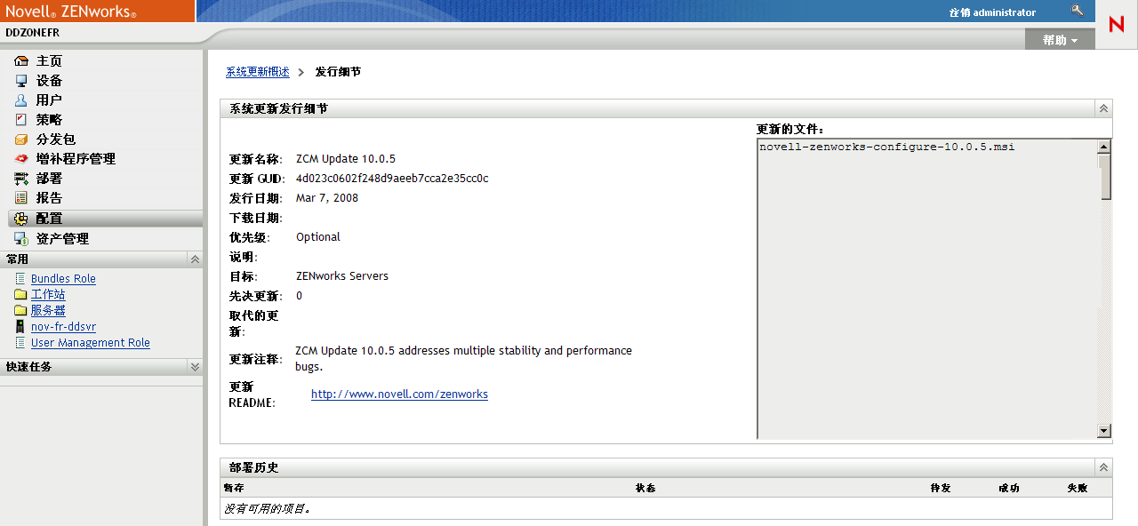 注:建议您在将所选更新部署到其他主服务器和连接这些服务器的受管设备之前,最好先将这些更新部署到一台 ZENworks 主服务器上,具体取决于您 ZENworks 系统的大小。