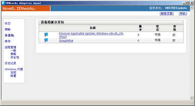 位于 Windows 通知区域中。双击该图标可以显示 ZENworks Adaptive Agent 属性。位于左侧导航窗格中的“分发包”链接可让您查看指派给您和您设备的分发包。