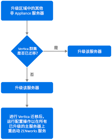 如果所有启用了 Vertica 的 Appliance 服务器均已迁移,请升级 Windows 或 Linux 服务器(非 Appliance 服务器)并继续步骤 4。有关升级服务器的详细信息,请参见将 Linux 和 Windows 主服务器升级到 ZENworks 2020 Update 2。