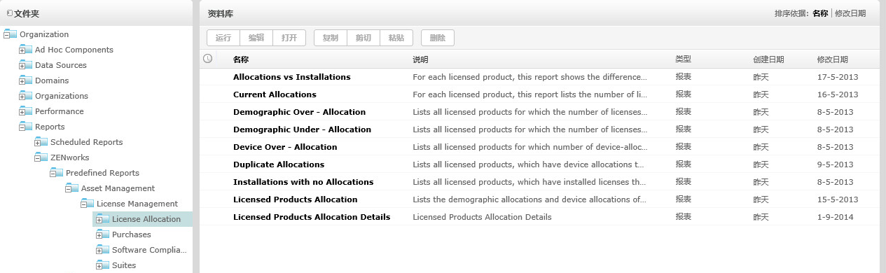 储存库是用于存放报告、分析视图和服务器相关文件的内部储存。储存库由包含文件系统等资源的文件夹组成。但是,与文件系统不同,储存库是以专用数据库的形式储存的,只有 ZENworks Reporting 才能直接访问它。
