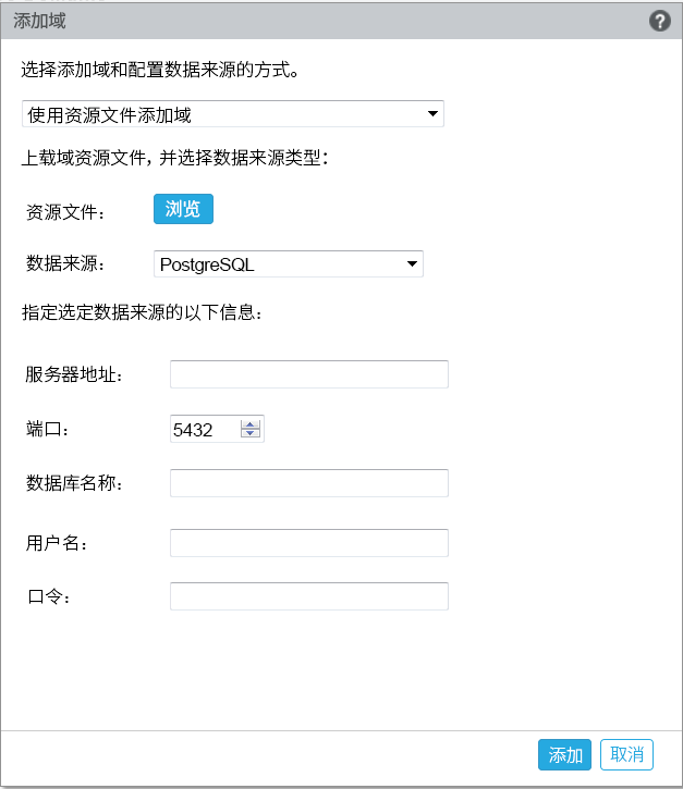 2. 在“添加域”页上,选择要如何添加域并配置数据来源。