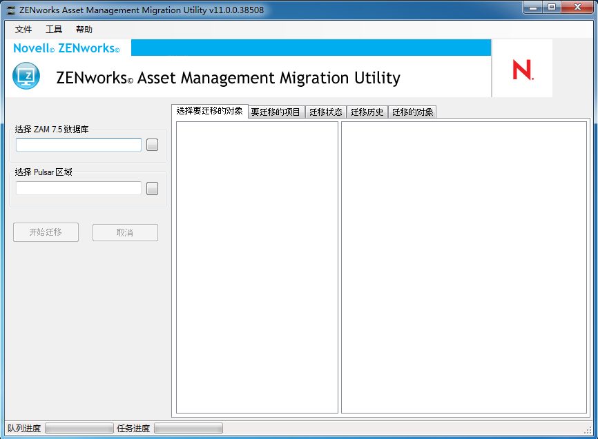 登录 Novell ZENworks 11 SP2 Asset Management Migration Utility 后,迁移控制台即会显示。