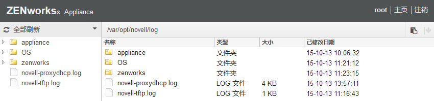 如此,您便可以查看 ZENworks 主服务器的日志。日志根据设备日志、操作系统日志和 ZENworks 日志分类。在 ZENworks 内部,日志根据不同的 ZENworks 组件分类。