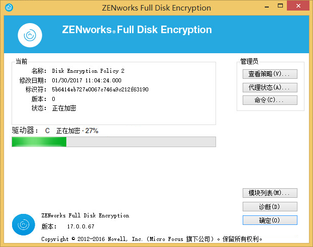 1. ZENworks 代理下次刷新时会收到该磁盘加密策略。