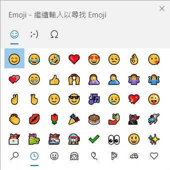按 Windows 鍵 + . (句點) 捷徑可開啟「表情圖示」功能表。