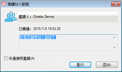 受邀參加對話的每位使用者都會接收到此訊息方塊︰