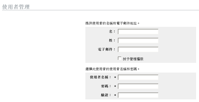 具有星號 (*) 的欄位是必要欄位,而且使用者名稱必須是唯一的。