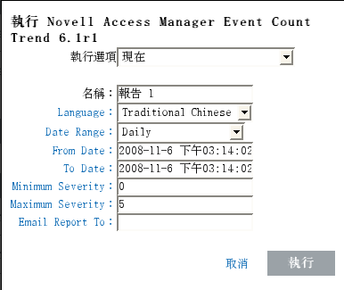 設定要在報告中包含之事件的嚴重性層級下限。