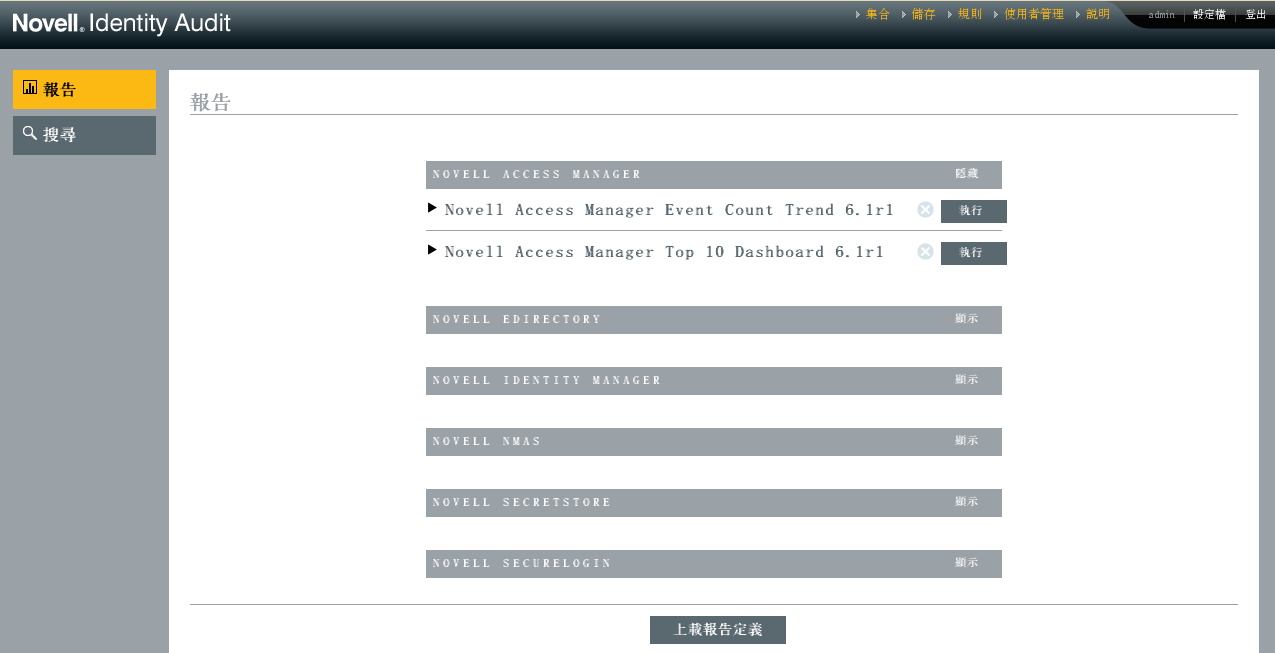 圖 1-1 Novell Identity Audit 介面 (管理員檢視)