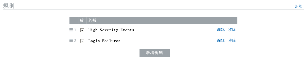 因為規則會依序評估事件直到發現符合的事件,Novell 建議您適當地排列規則順序。您應該將條件較嚴格的規則以及較重要的規則放在清單開頭。當清單中有多個規則時,您可以使用拖放方式來重新排列規則順序。