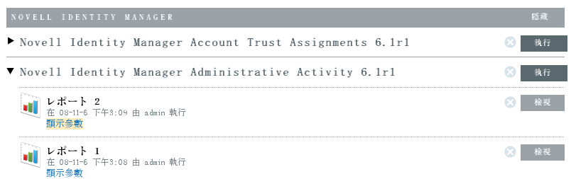 若要檢視報告結果清單,請點選「」。顯示所有先前執行的報告時會一併顯示使用者定義的報告名稱、執行報告的使用者,以及執行報告的時間。