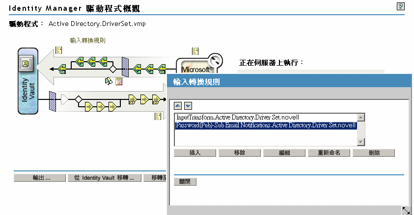 然而,對於「密碼同步化」電子郵件通知而言,還會需要將密碼包含在驅動程式規則中。 Metadirectory 引擎可以存取使用者名稱,但不可以存取密碼,其必須由驅動程式規則提供。