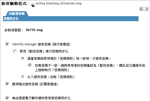 如果您將「密碼同步化」與 Identity Manager 驅動程式搭配使用,而且想要使用電子郵件通知功能時,還必須進行下列幾項操作: