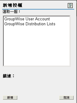 例如,在下圖中,您可以看到 GroupWise 驅動程式將提供的兩種授權,清單中的第一種授權是「GroupWise 使用者帳戶」。