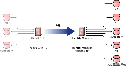 圖 2-4 將「密碼同步化 1.0」升級至「Identity Manager 密碼同步化」
